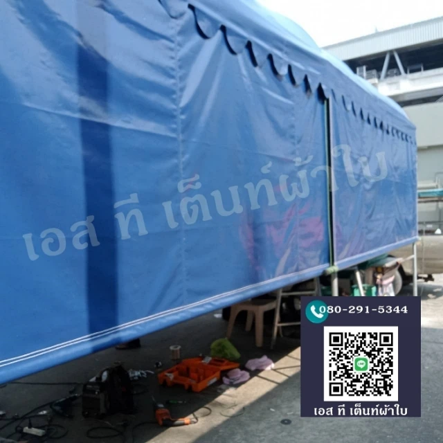 วัสดุผ้าใบที่ใช้: ผ้าใบคูนิล่อน เส้นใยโพลีเอสเตอร์เคลือบพีวีซี 2 ด้าน หนา 0.5 มิล